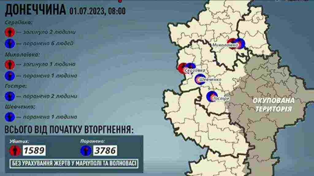 Минулої доби противник завдав 8 ракетних та 58 авіаційних ударів, здійснив понад 50 обстрілів з реактивних систем залпового вогню по позиціях наших військ, військових та цивільних інфраструктурних об’єктах Луганської, Донецької, Запорізької та Херсонської областей. Зокрема, внаслідок ракетного удару крилатою ракетою наземного базування "Іскандер-К" по школі в Сергіївці на Донеччині – 2 цивільні людини загинули і 6 поранено, школа повністю зруйнована. Внаслідок обстрілу російськими окупантами житлового будинку в Антонівці на Херсонщині отримала поранення родина з дитиною. Загалом, пошкоджено близько 30 цивільних житлових будинків.