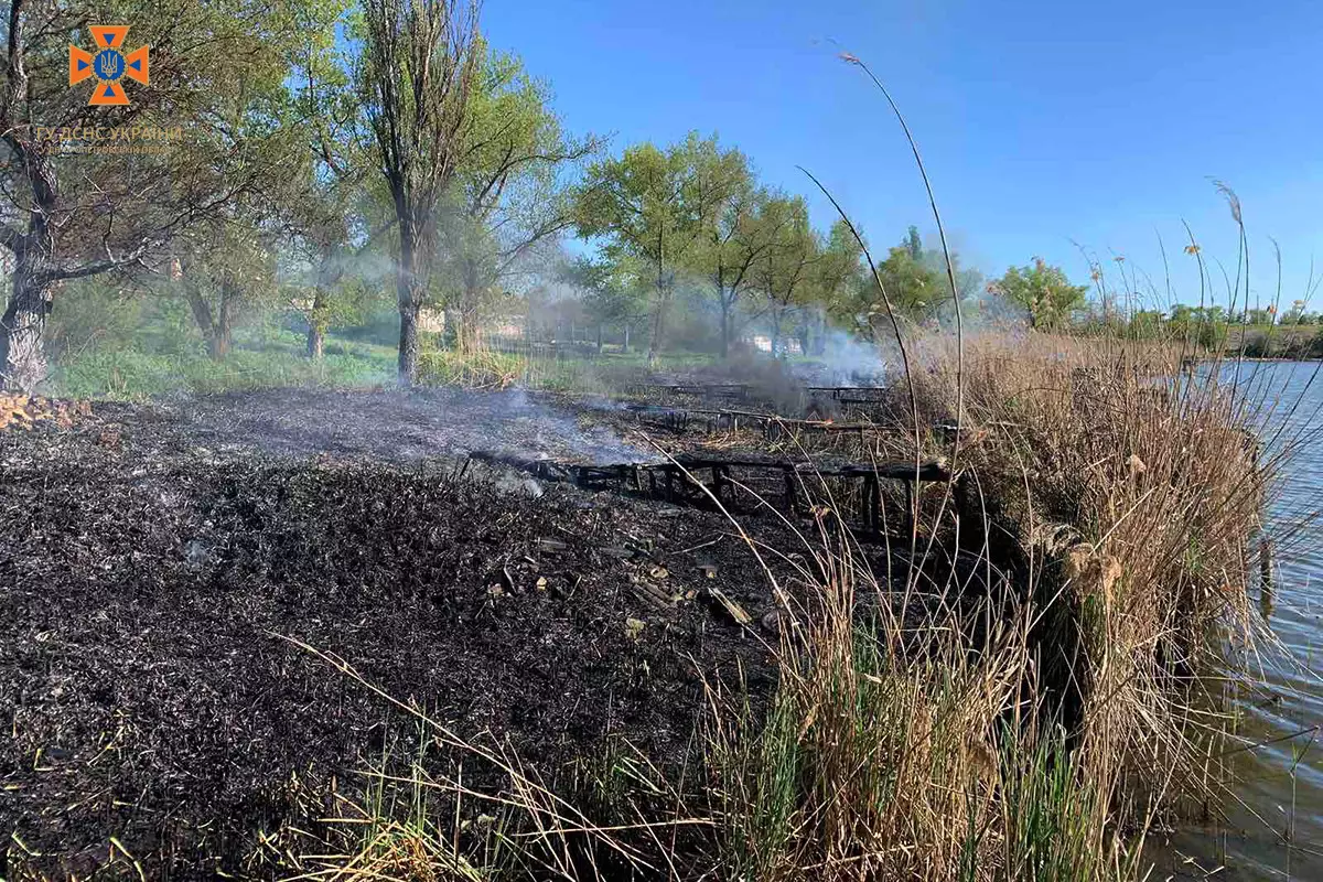 «До рятувальників звернулося двоє дітей з наявними термічними опіками. Зі слів хлопчиків, вони сиділи на риболовному пірсі та ловили рибу. Зненацька почули позаду шум, озирнулися та побачили велике полум’я та дим. Злякавшись, діти побігли через палаючий очерет до берега. Внаслідок чого, хлопчик 2012 року народження отримав термічні опіки обличчя та верхніх кінцівок (І, ІІ – ступеня). Інший, 2010 року народження отримав термічні опіки лівого плеча (І-ступеня). Працівники екстреної медичної допомоги надали першу медичну допомогу дітям та госпіталізували до лікувального закладу міста», – йдеться у повідомленні.