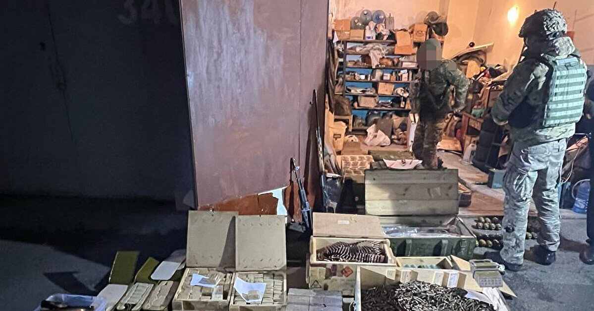 Державне бюро розслідувань (ДБР) заявило, що за сприяння Департаменту внутрішньої безпеки Національної поліції України виявило великий склад зі зброєю у Києві. Наголошується, що в одному з гаражів у Деснянському районі міста зберігалося: понад 35 тисяч патронів, 6 гранатометів, 6 БПЛА, 130 гранат 90 ВОГів, автомати, снайперські гвинтівки, ударно-дистанційні запали, прилади для спостереження, пістолети, протипіхотні міни тощо. буд. За даними ГБР, власниками цього арсеналу виявилися працівник одного з правоохоронних органів та його батько. Наразі слідчі встановлюють походження вогнепальної зброї, боєприпасів та вибухових пристроїв, а також мету її зберігання.