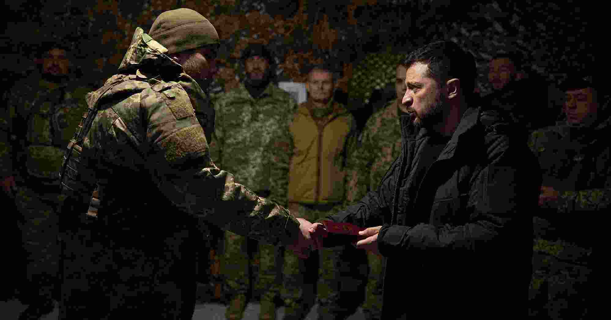 Зеленський вручив відзнаку "Хрест бойових заслуг" чотирьом воїнам. Її отримали: