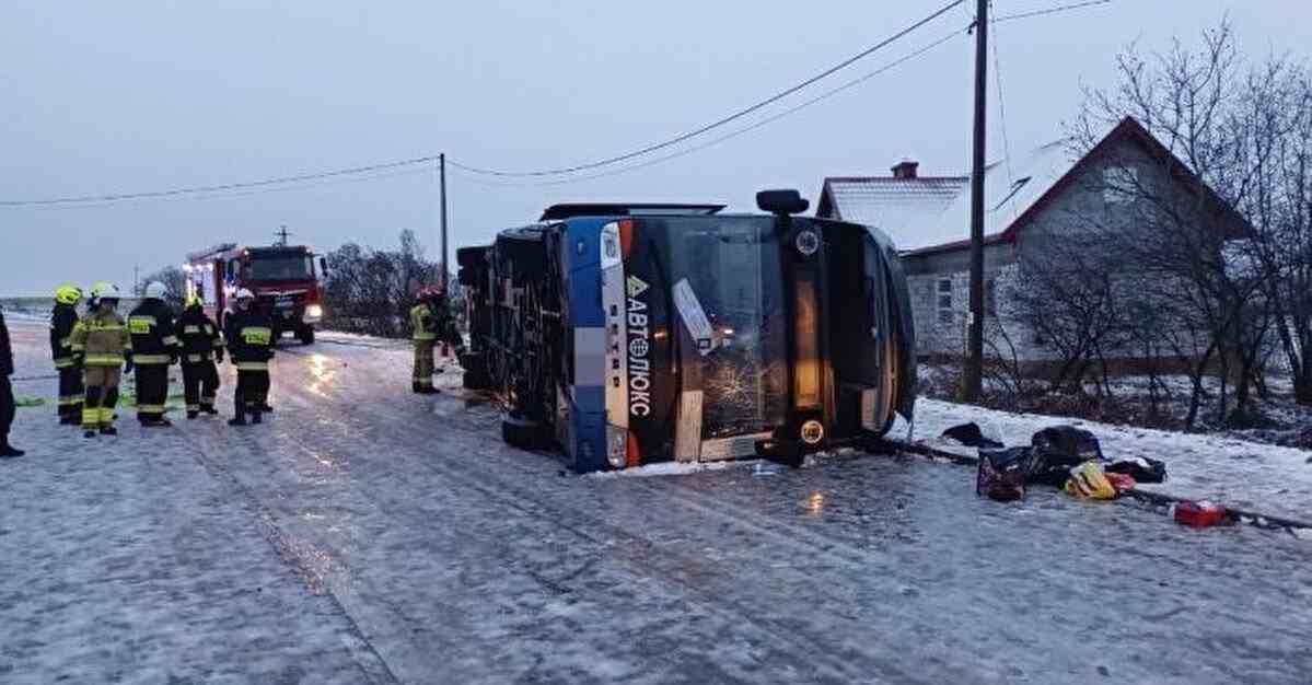 Автобусом з України до Польщі їхали 59 пасажирів і двоє водіїв. Повідомляється, що автобус на повороті перекинувся на бік.